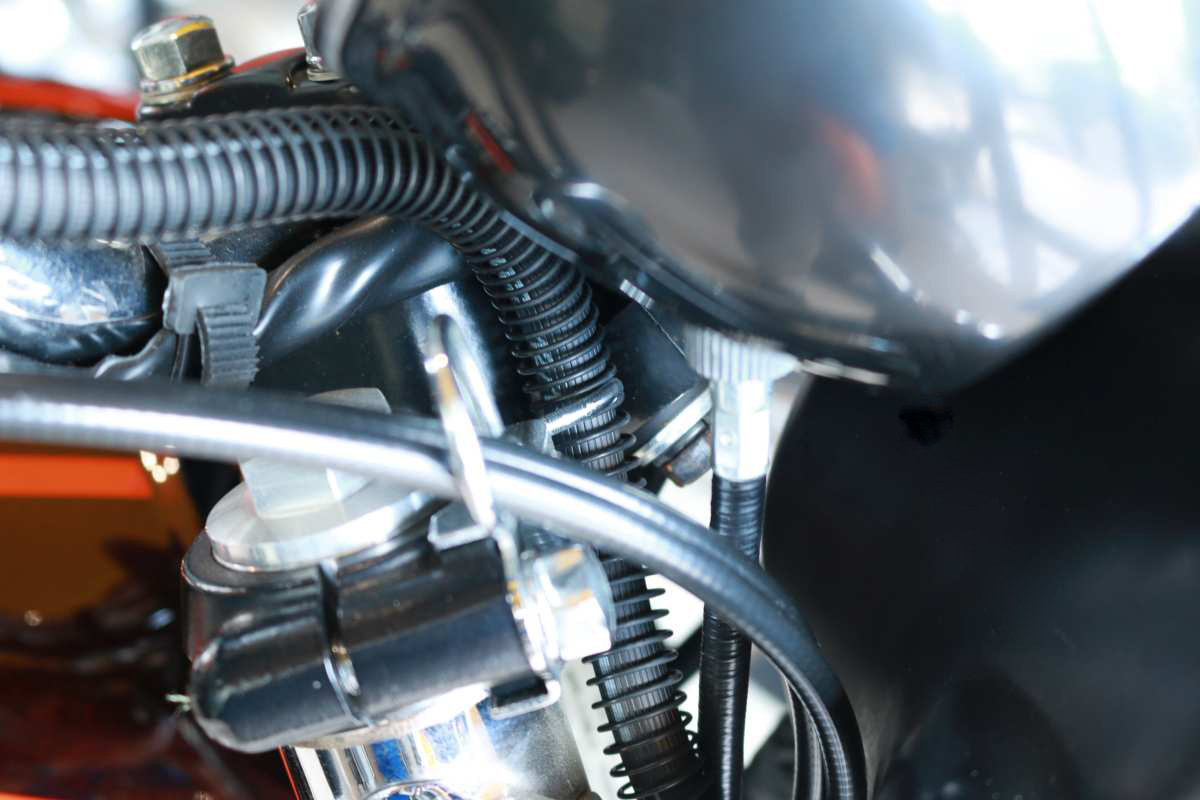 アッパーホースはガイドとの摩耗を考慮されスプリングで保護されています。