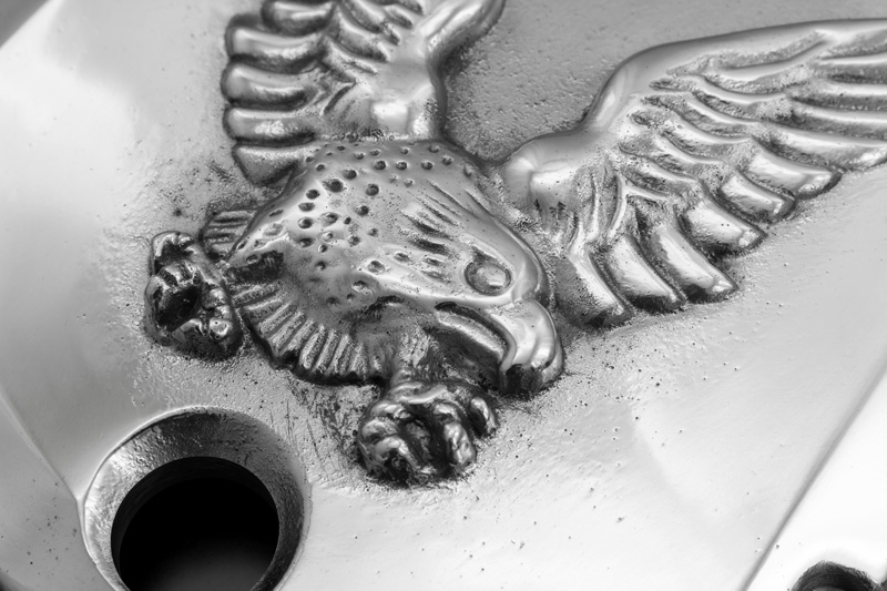 鋳物の為一つ一つ違った表情を浮かべる鷲はシンプルなエンジン回りにも強烈なインパクトを与えます。